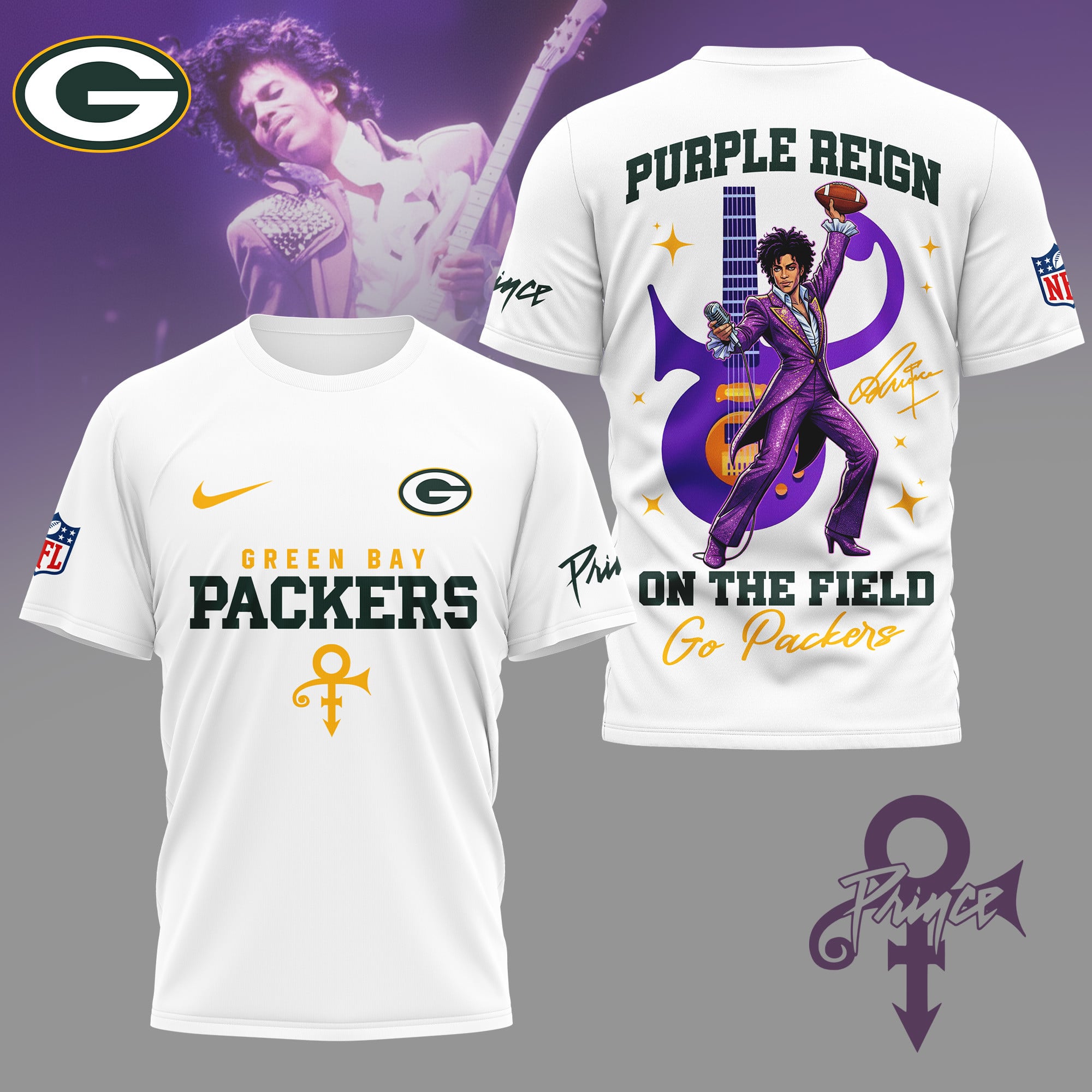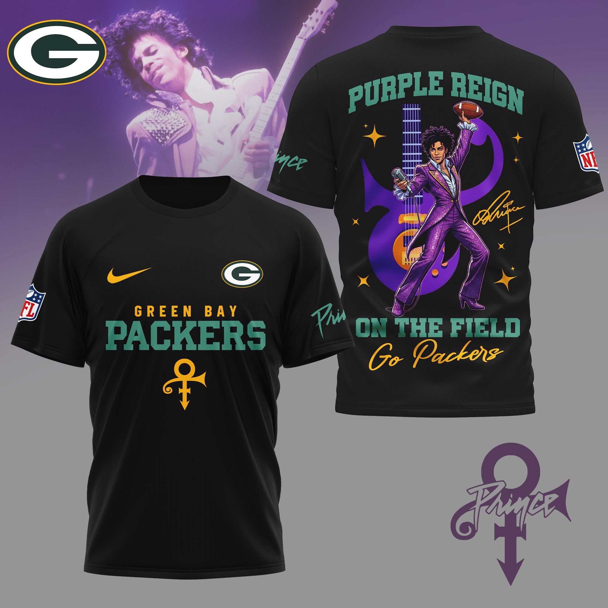Green Bay Packers | Premium NFL Prince Purple Reign Football 3D Shirt NY$27.95 USD$42.95 USD
