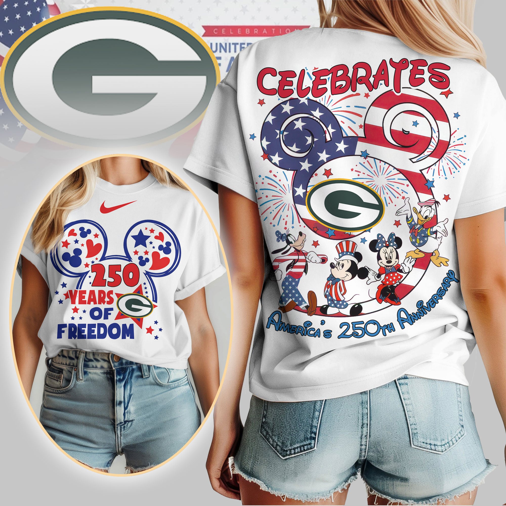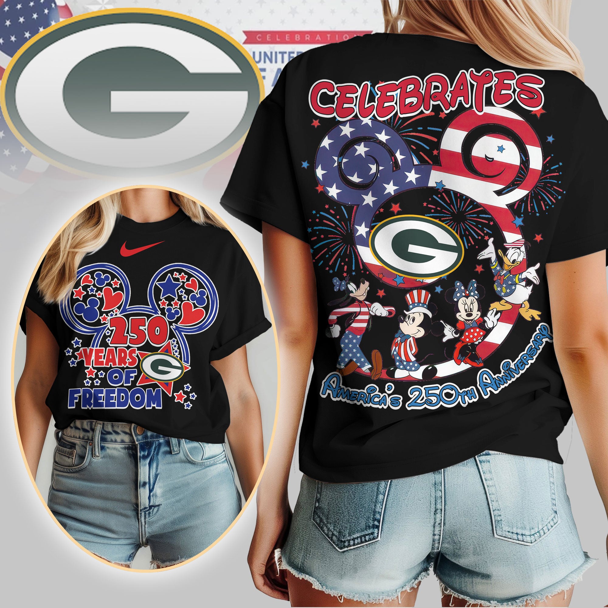 Green Bay Packers | Premium NFL Mickey Celebrate America Women Shirt TD$27.95 USD$42.95 USD