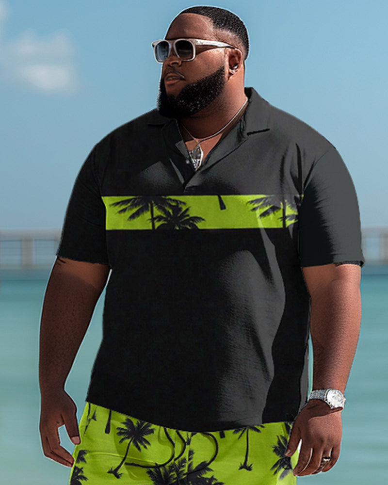Hawaiian Art Coconut Color-block Shorts Men's Plus Size Set