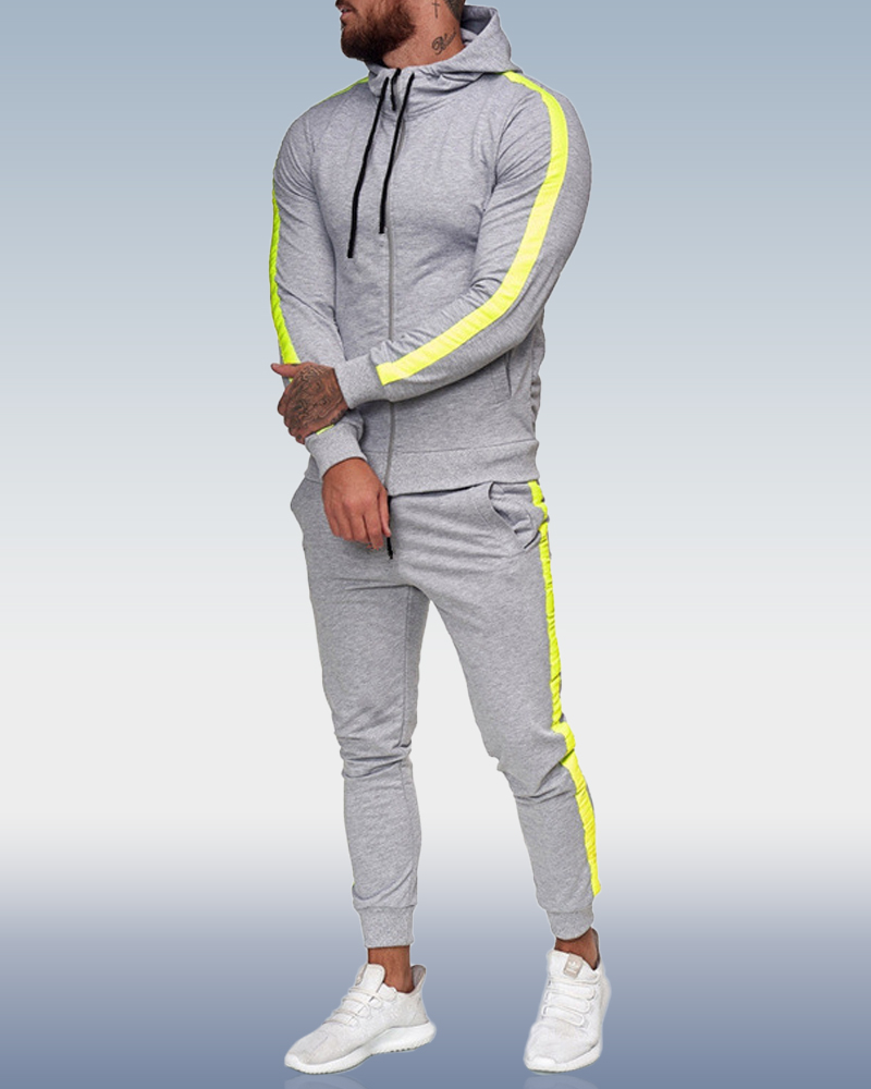 Men's Grey Green Striped Casual Sports Two-Piece Set