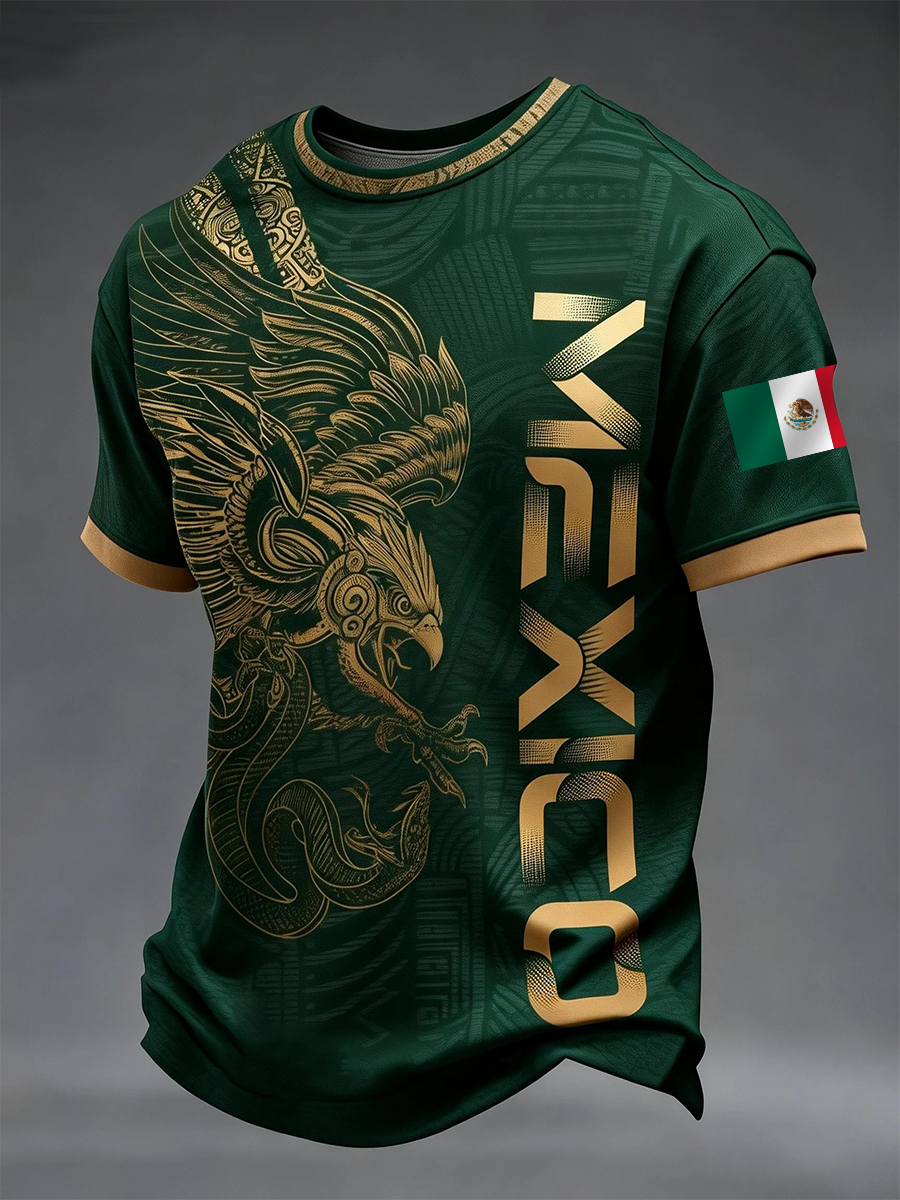 Men's Mexican Aztec Soccer Print Casual Tee