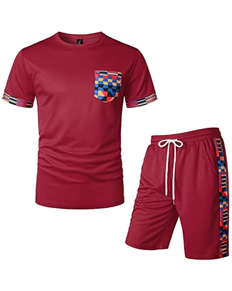 Men's Printed Colorblock T-Shirt and Shorts Set 004