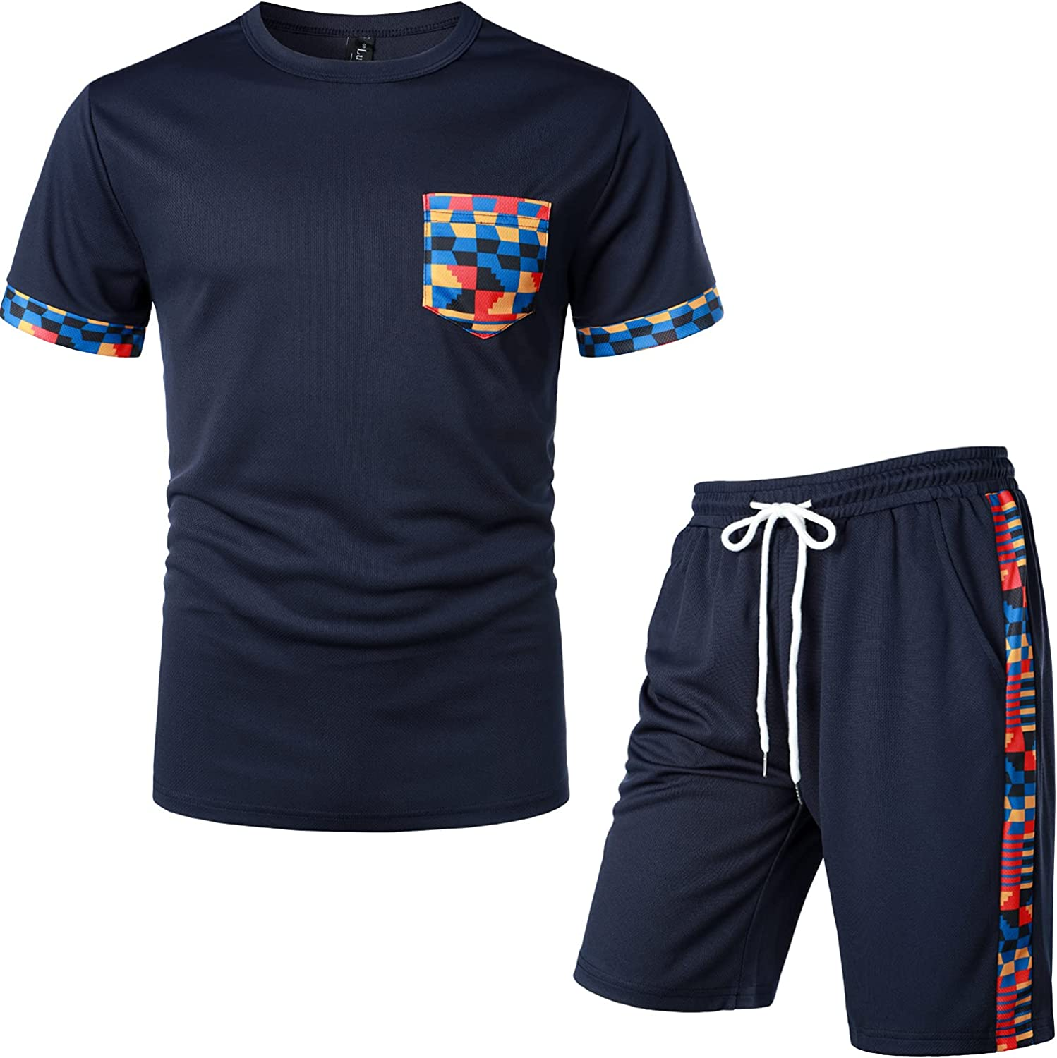 Men's Printed Colorblock T-Shirt and Shorts Set 005