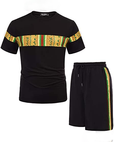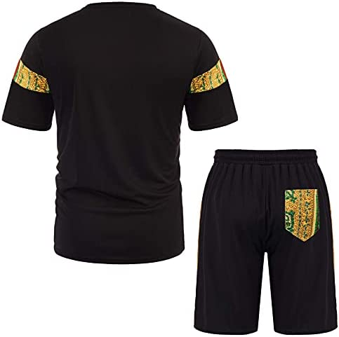 Men's Printed Colorblock T-Shirt and Shorts Set 031