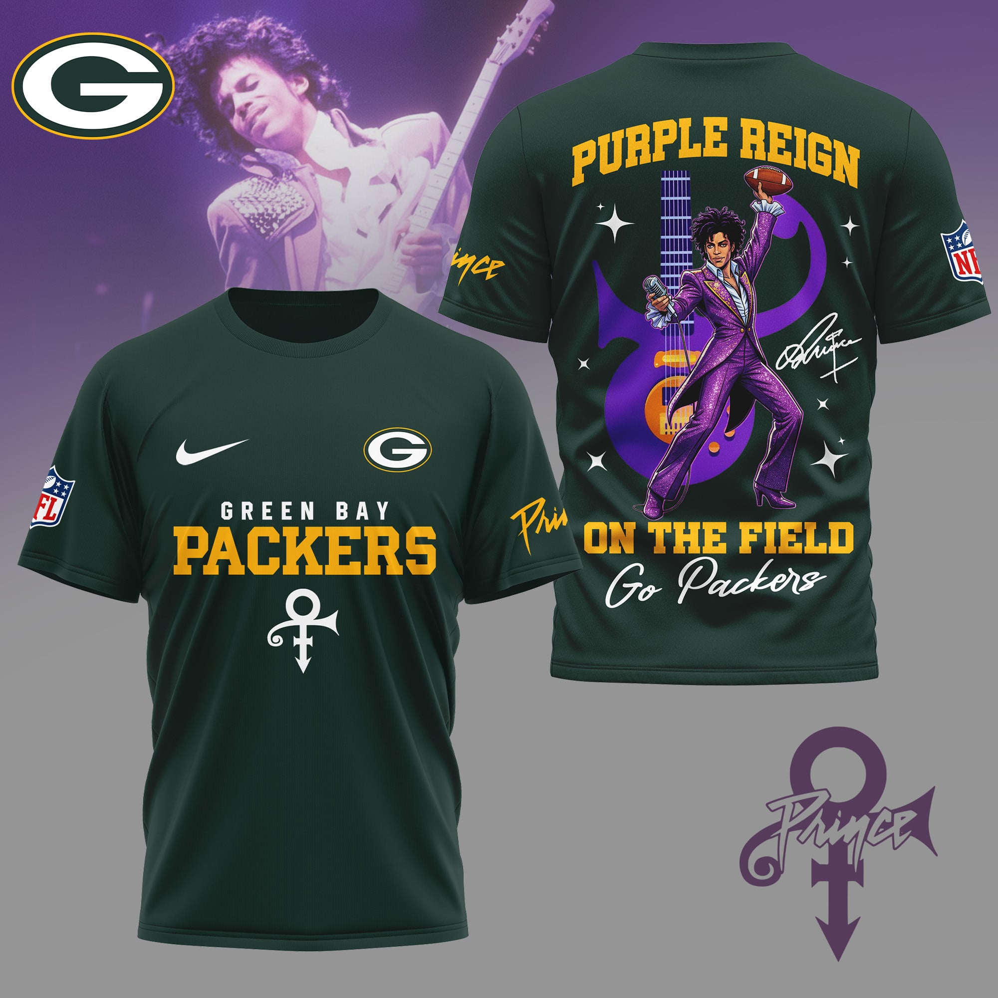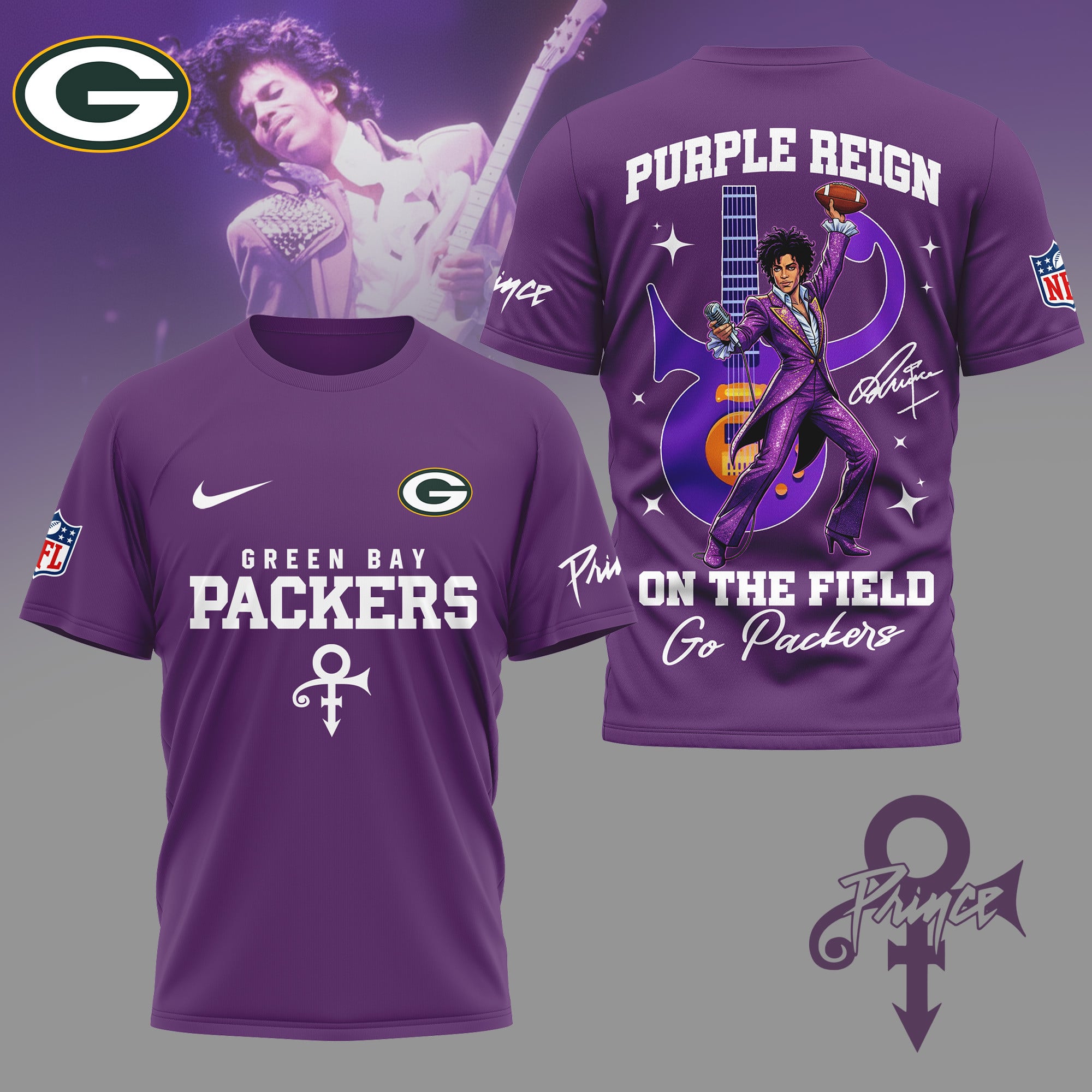 Green Bay Packers | Premium NFL Prince Purple Reign Football 3D Shirt NY