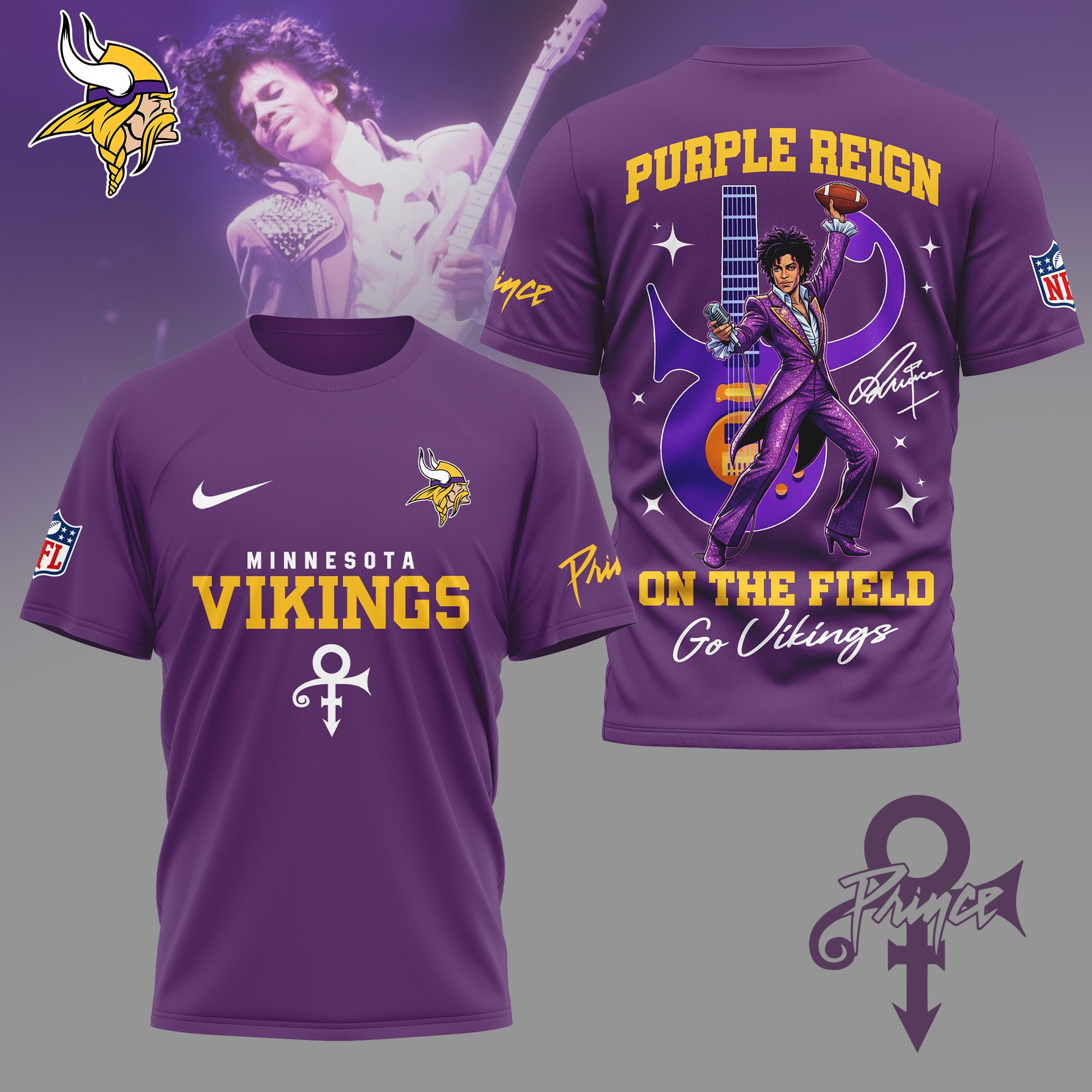 Minnesota Vikings | Premium NFL Prince Purple Reign Football 3D Shirt NY