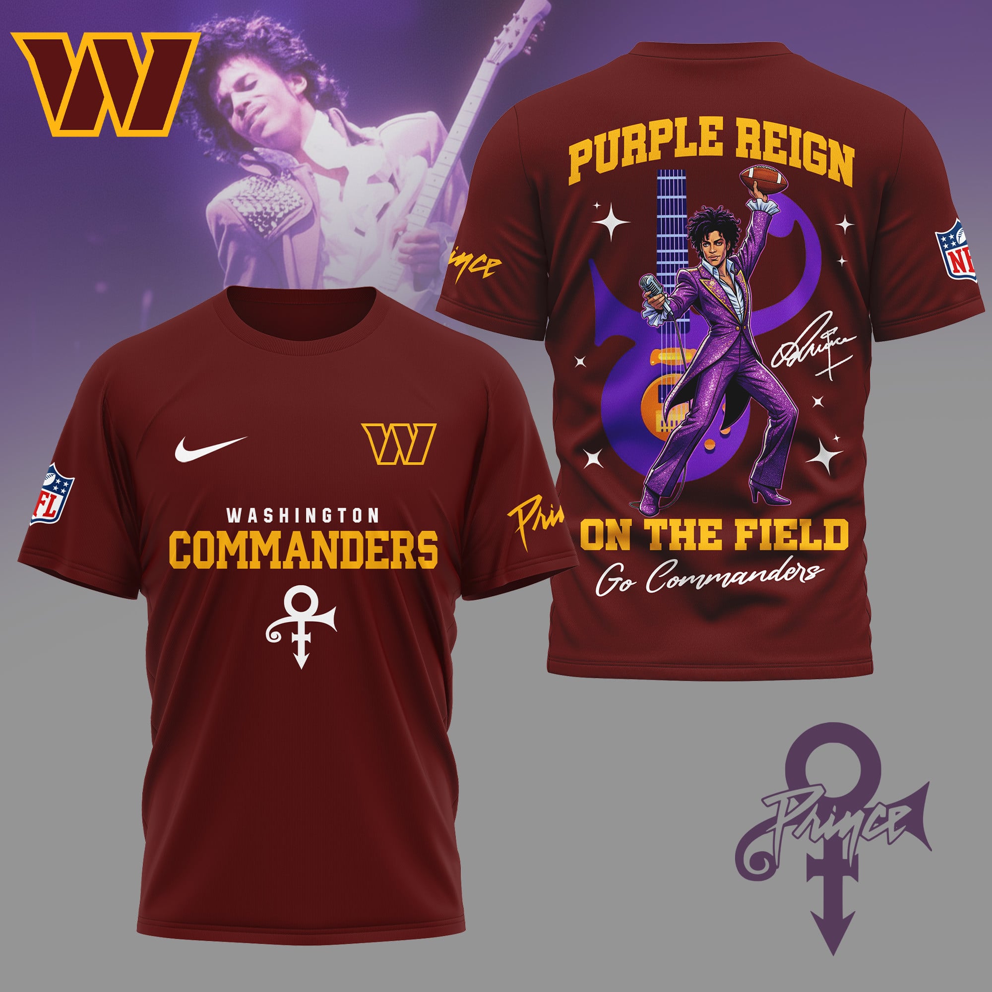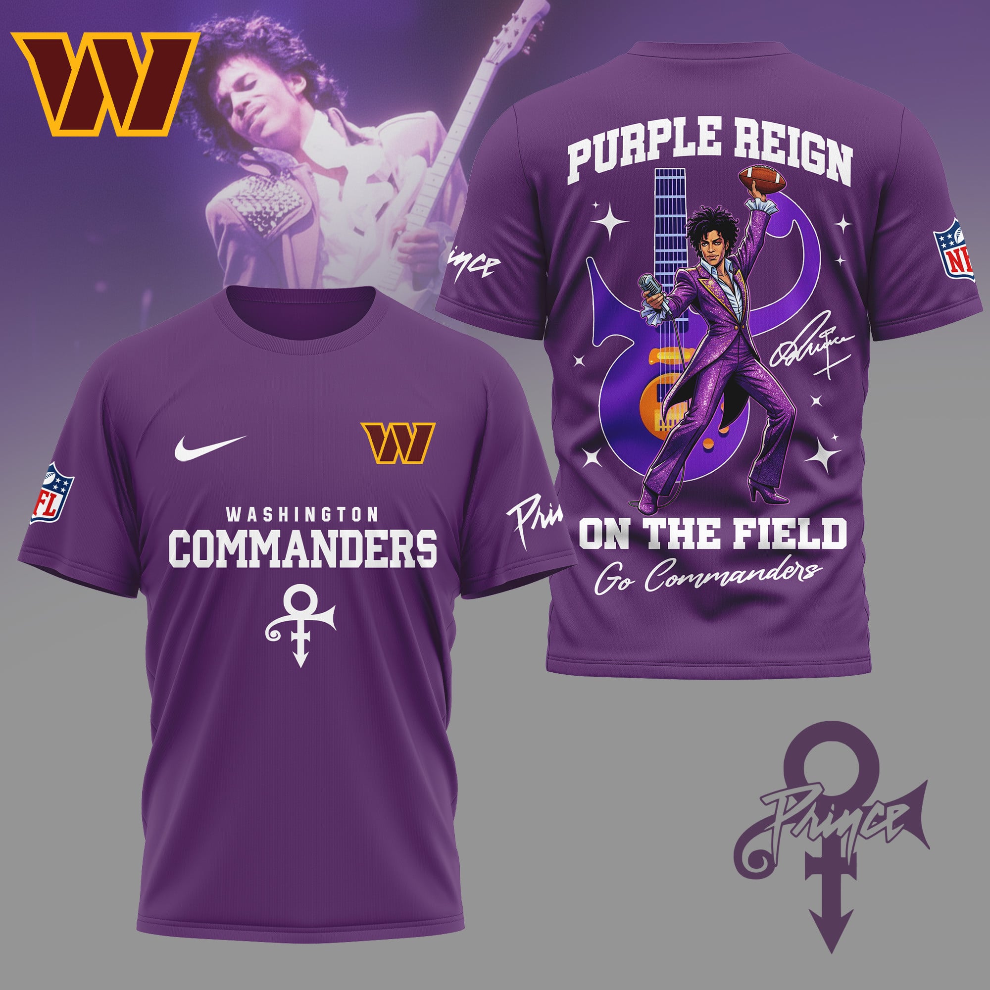 Washington Commanders | Premium NFL Prince Purple Reign Football 3D Shirt NY