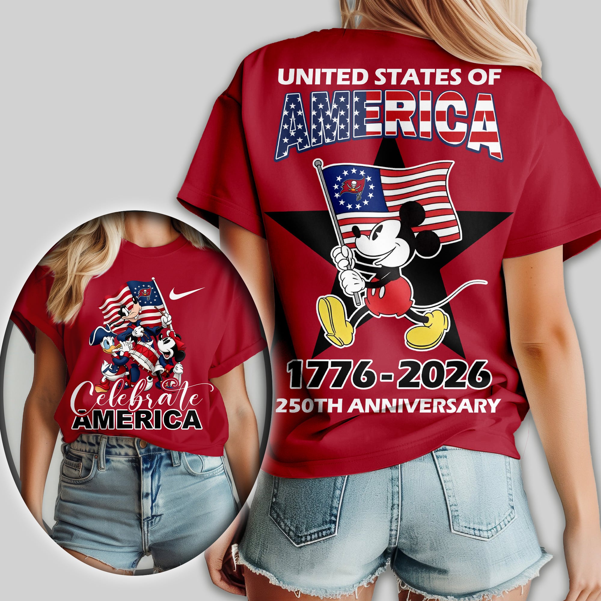 Tampa Bay Buccaneers | Premium NFL Mickey Celebrate America Women Shirt TD