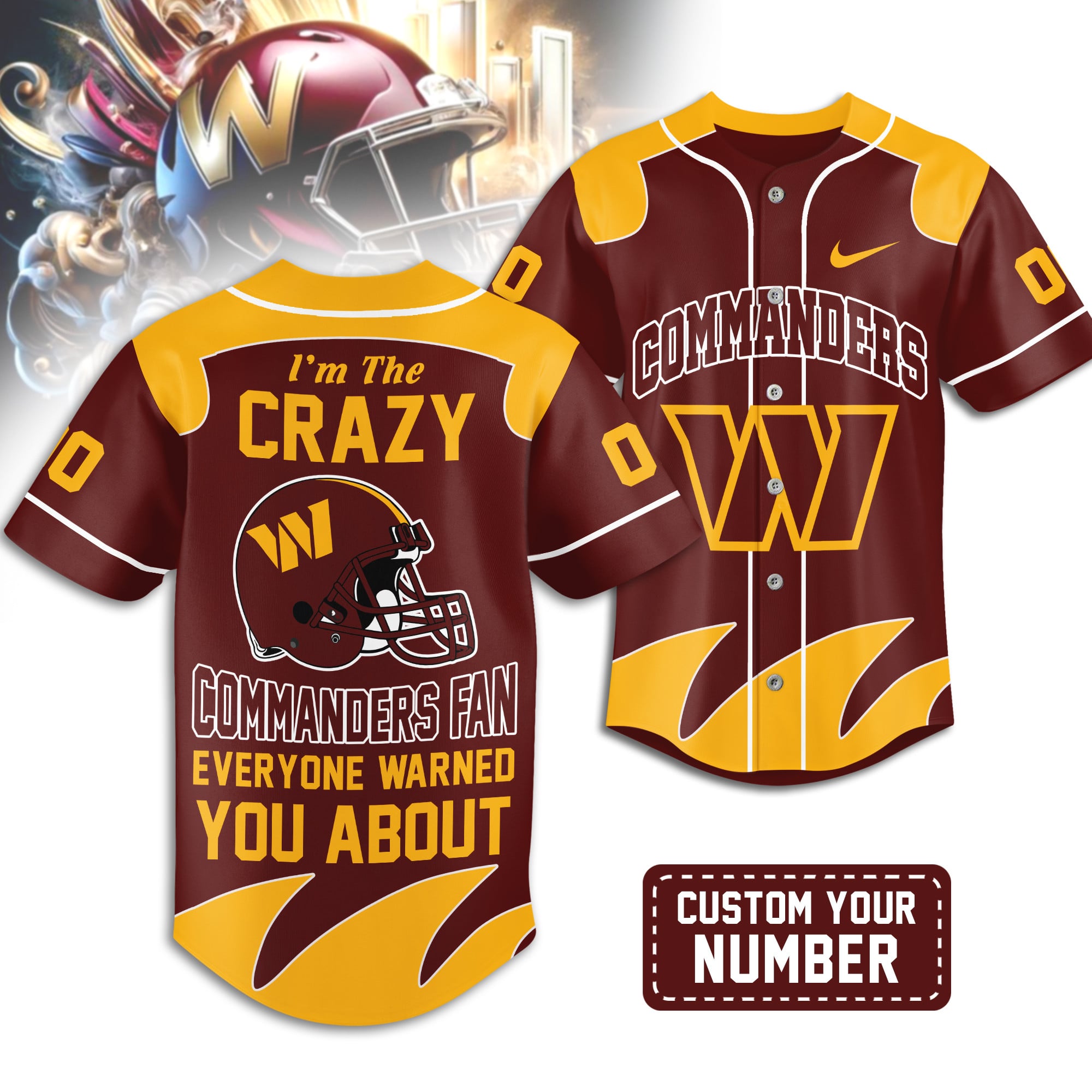 Washington Commanders | Premium NFL Crazy Football Fan Personalized Jersey TD