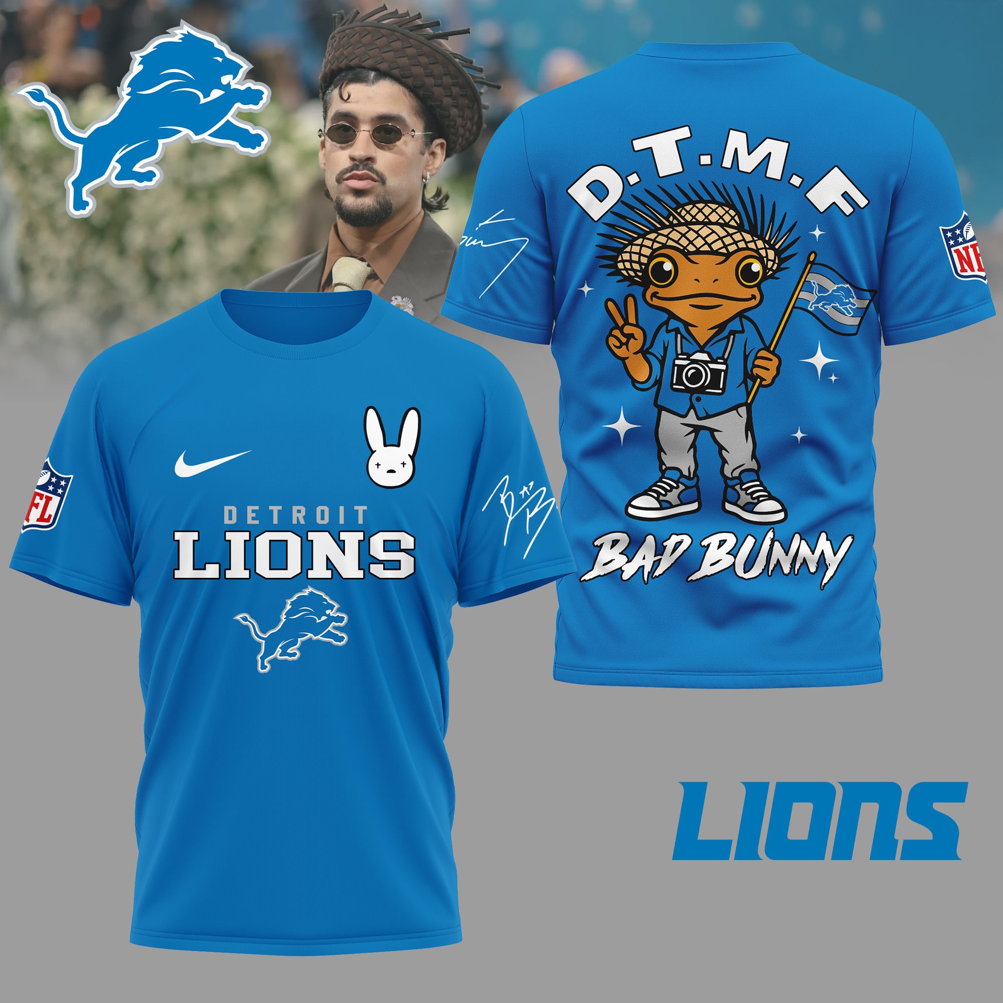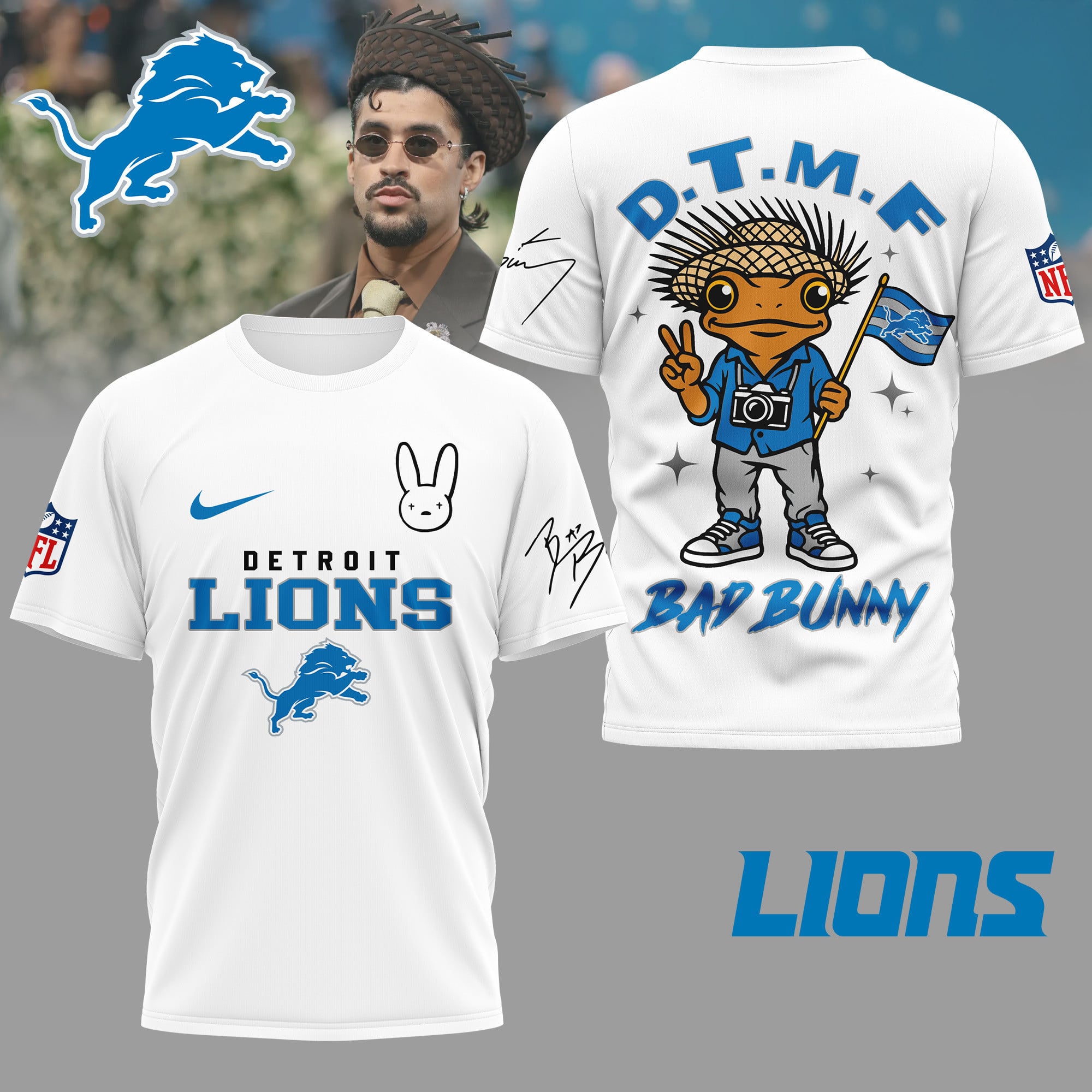 Detroit Lions | Premium NFL Bad Bunny 3D Shirt TD
