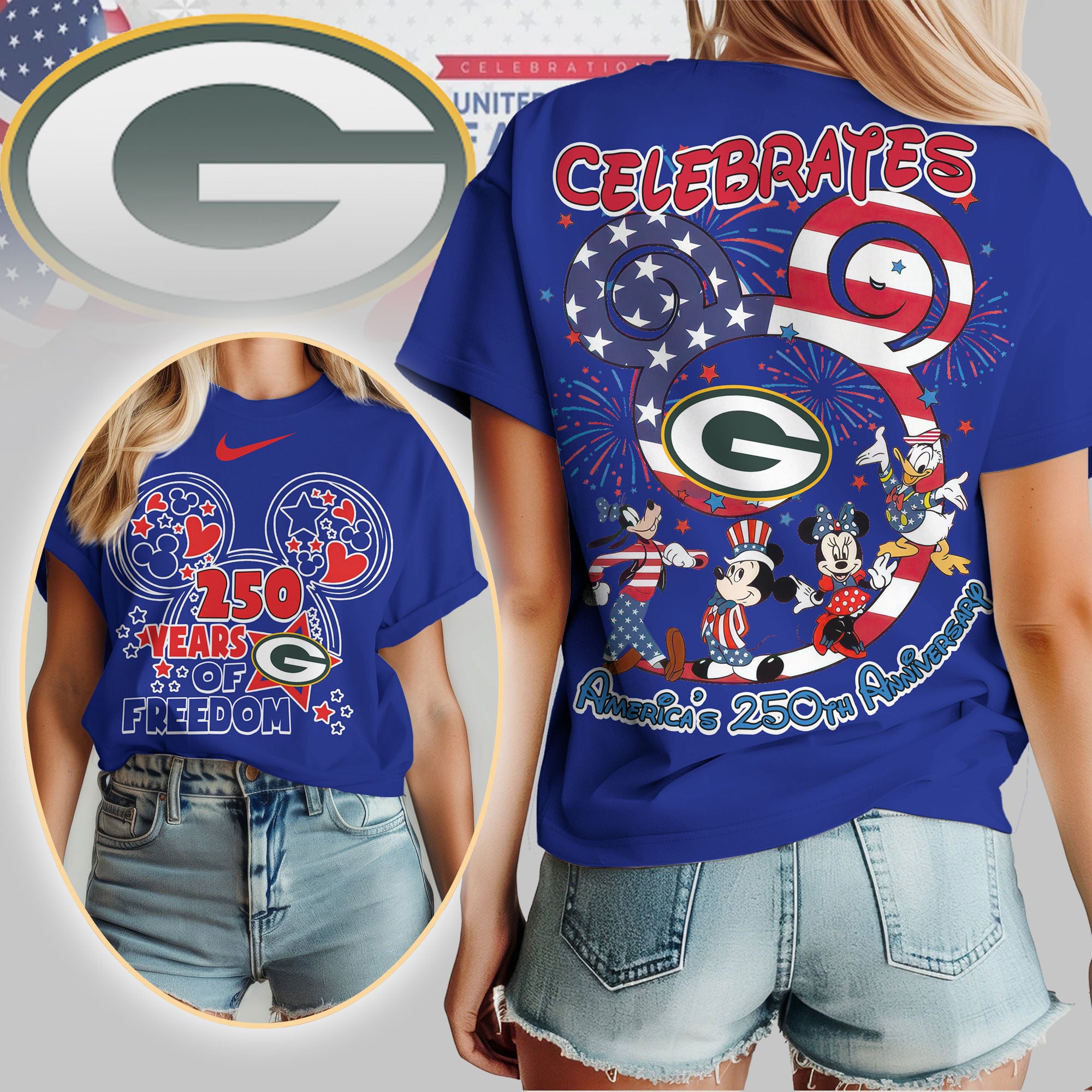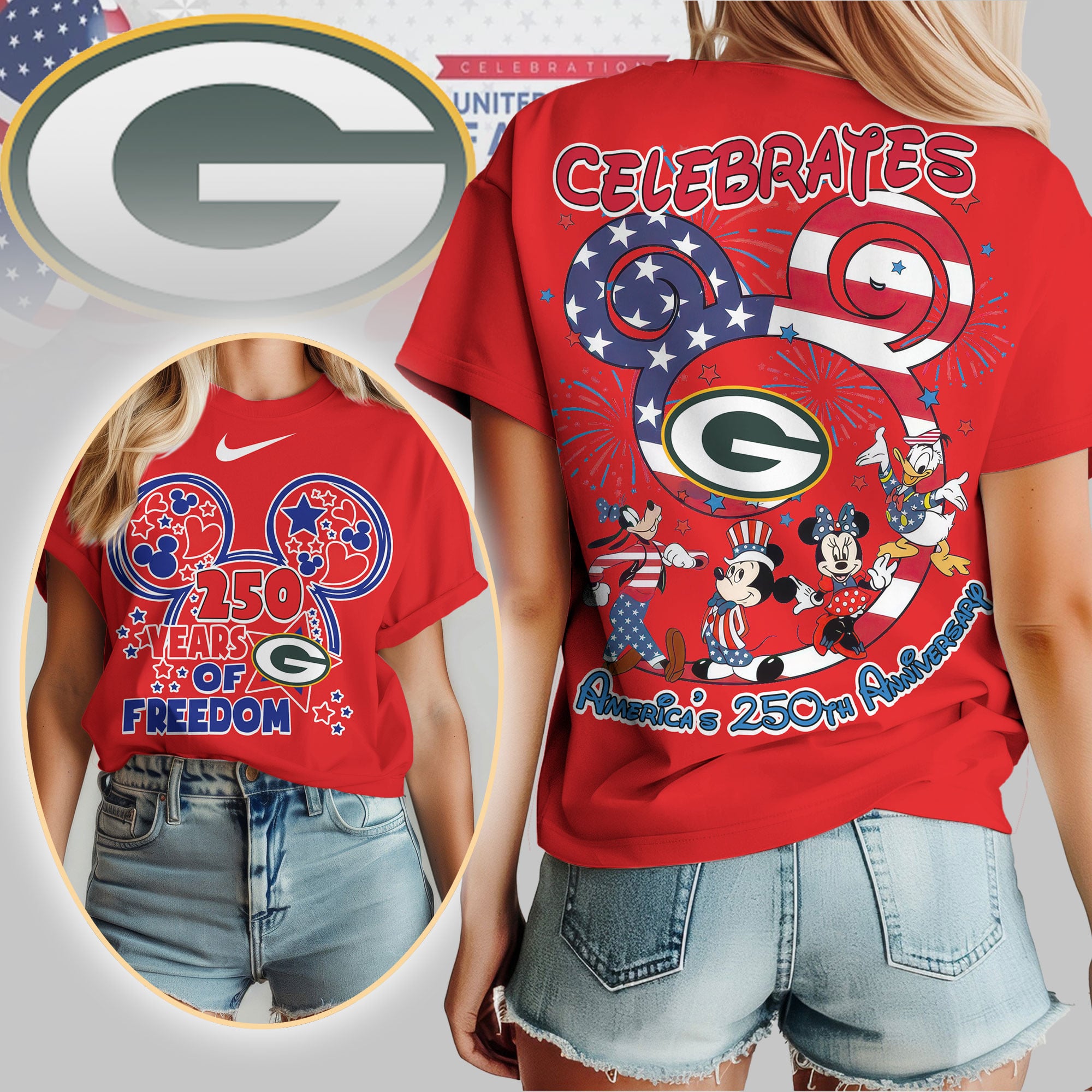 Green Bay Packers | Premium NFL Mickey Celebrates America 250th Anniversary Women Shirt TD