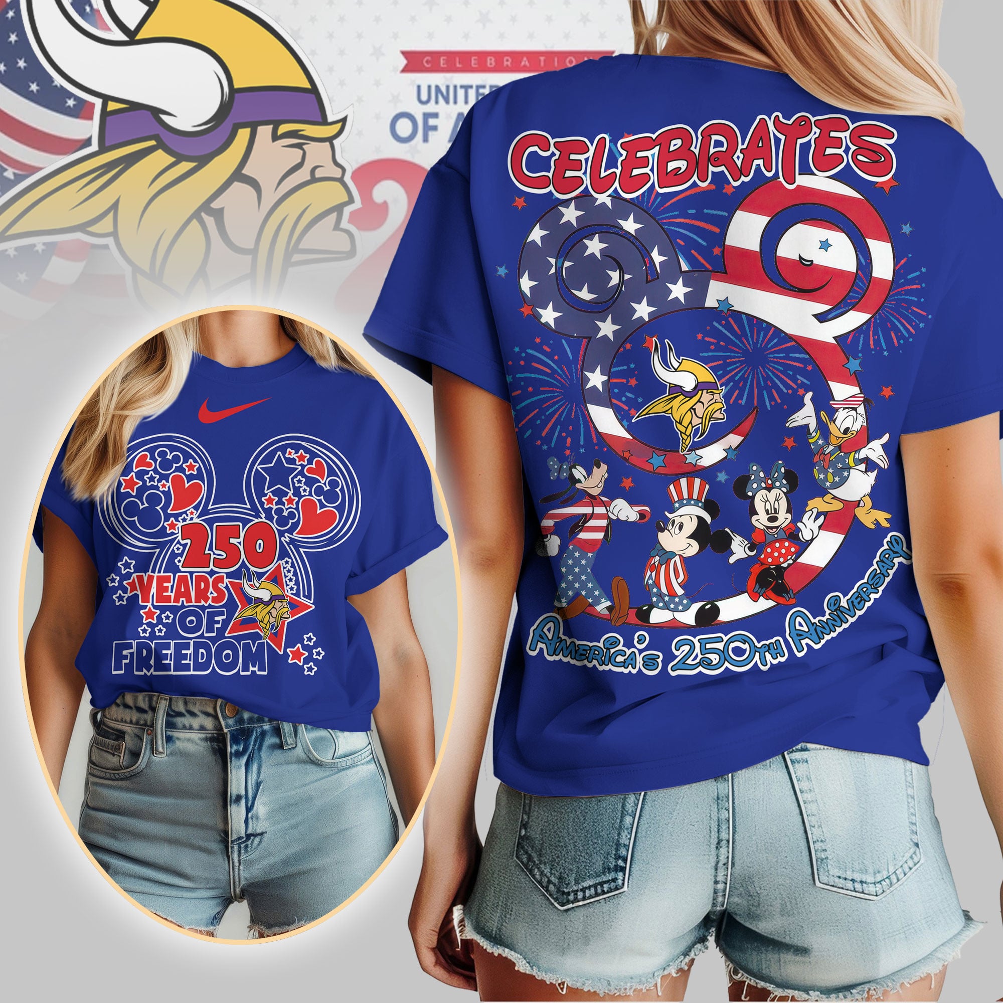 Minnesota Vikings | Premium NFL Mickey Celebrates America 250th Anniversary Women Shirt TD