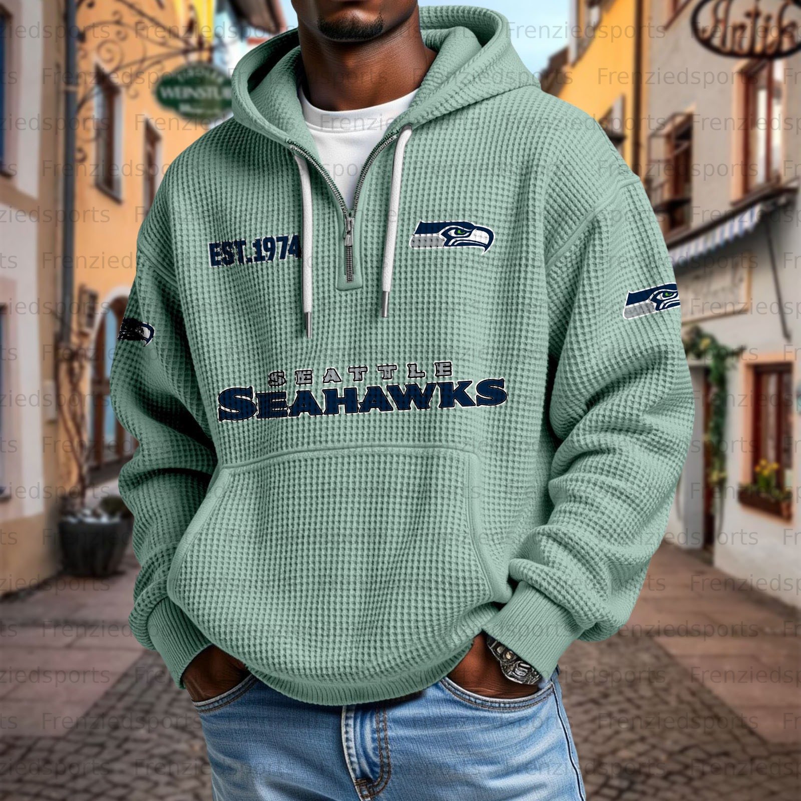 Unisex "Seattle Seahawks " Graphic Streetwear Vintage Waffle Fabric hoodie